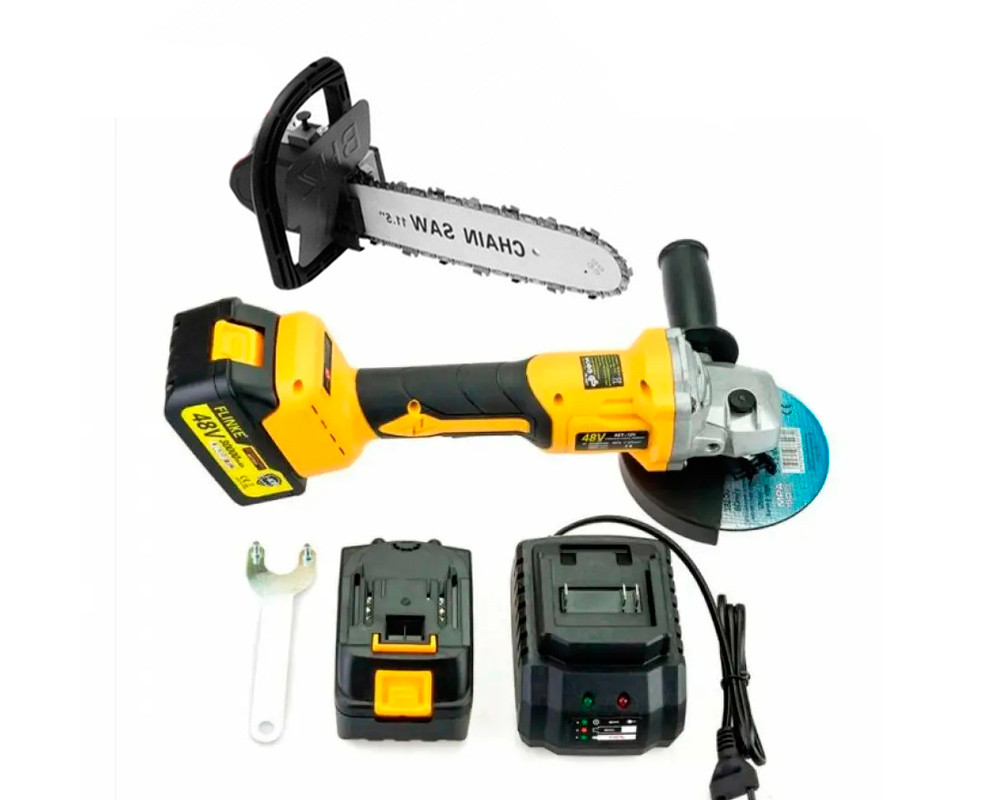 Набір 2 в 1 акумуляторна болгарка FLINKE FK-8027 48v + насадка пила ланцюгова (11.5")
