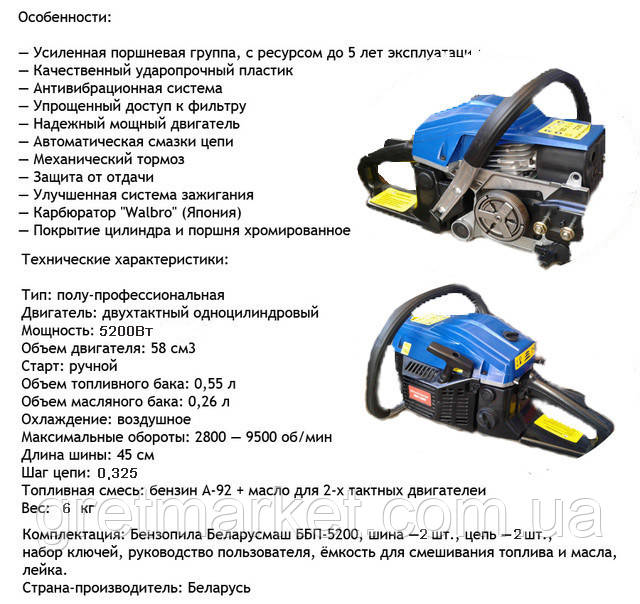 Бензопила Беларусмаш ББП-5200 (2шини,2чі)